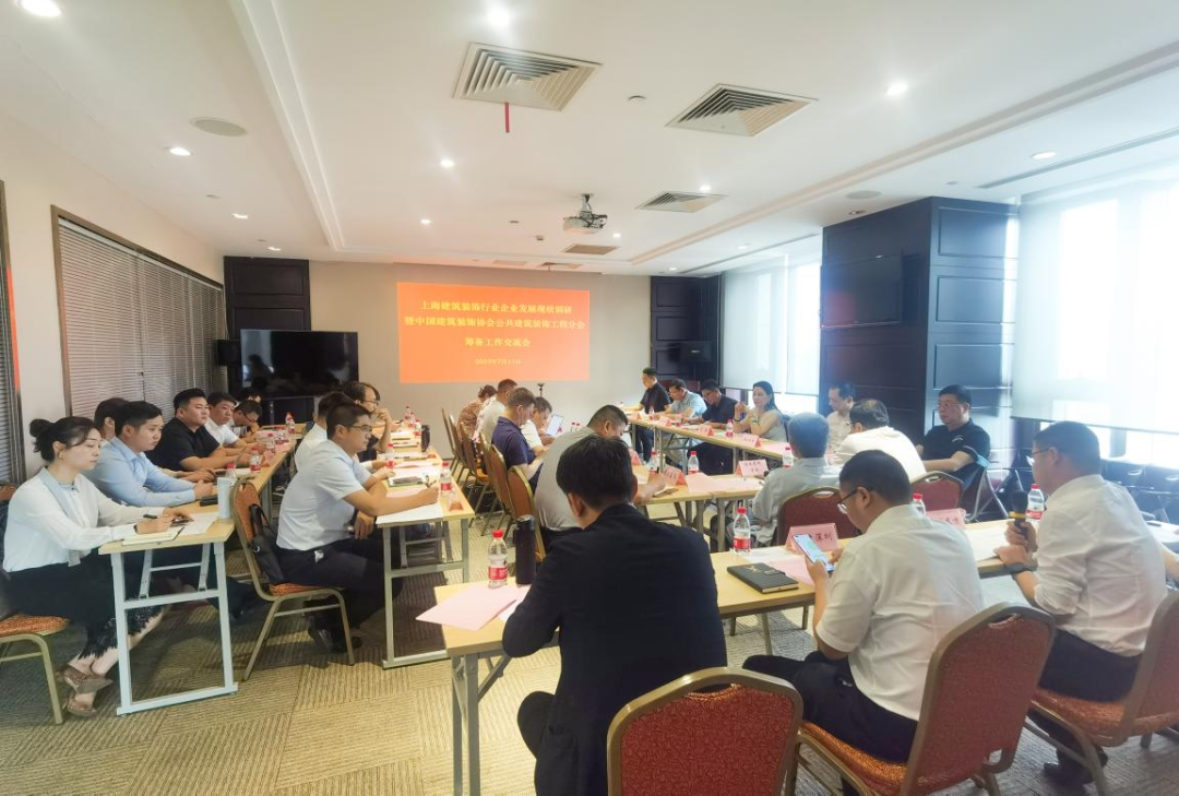 7月11-12日,由我会副会长兼秘书长张京跃带队,中装协公装分会筹备组组长罗胜等4人调研组赴上海市开展调研,上海市装饰装修行业协会会长陈丽、秘书长沙峰等参与调研,开展座谈。此次调研标志着建筑装饰行业企业发展现状调研暨中国建筑装饰协会公共建筑装饰工程分会筹备工作地方交流会拉开序幕,上海首站成功举行。 浙江中装